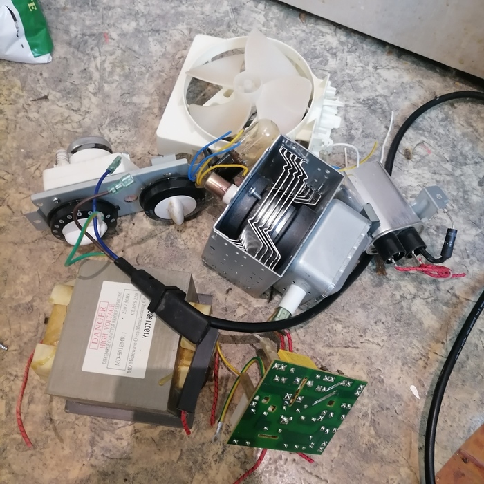 Трансформатор, конденсатор, магнетрон, вентилятор, таймер и даже лампочка!