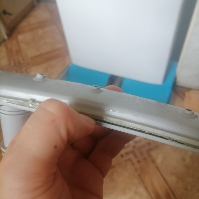 Как я говорил выше, что течь появилась ни с того ни с сего, и как видно на фотографии, видны следы человеческого рукожопства. Следы поксипола. Признаюсь - "это я починиль" ©, давно это было. Чтобы прочистить "дырочки", я тогда решил разобрать этот "сендвич" варварским методом, думал там защелки, ан нет - распылитель был неразборным,