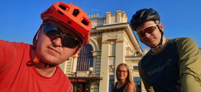 Тихим ходом добрались до Московского вокзала. Он оказался достаточно далеко от центра, минут 20 на велике. Рядом с ЖД ничего интересного, пыльная дорога и спальный район. Да и вокзал мелкий, небольшое здание, которое можно обойти вокруг за минуту. На путях стояла пара вагонов, с надписью “Ласточка”, я сказал, что вот на нем и хочу поехать.