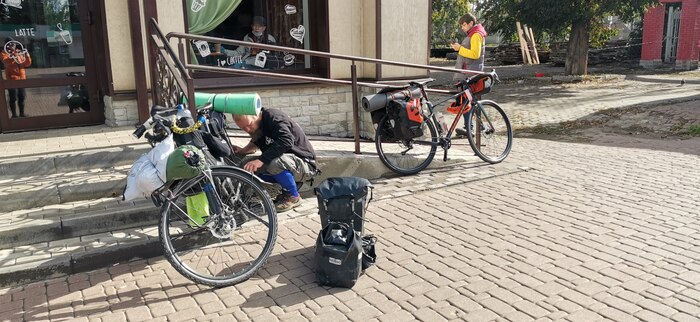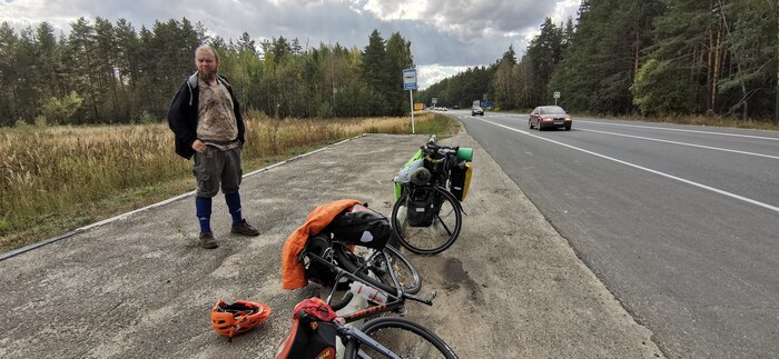 Подготовка заняла немного времени, я чуть подкрутил тормоза на велике, Саша поменял покрышки на бескамерки. Аня вообще только вернулась из очередного велопутешествия и тут же поехала с нами в другое.