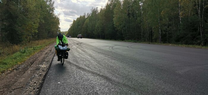 Дорога хорошая, немного жарко, едь и едь. Но мне стало фигово, может перегрелся, или съел что. Так что плелись мы со скоростью 10-13 километров в час. И дорога уже не казалась такой приятной. Лучше уж были бы небольшие горки и спуски. Ровная дорога выматывает.