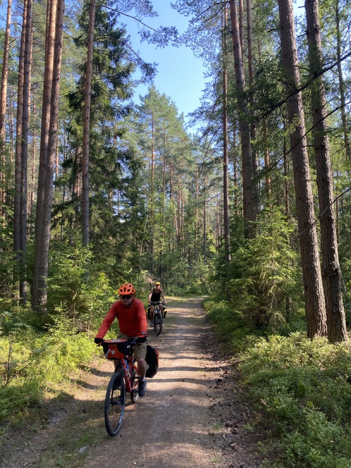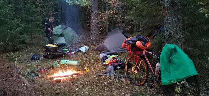 Скорость средняя около 20 кмч, макс под 38. Велики гравелы. У меня Giant Revolt 2, у товарища Marin 4 Corners. Вещей немного, но спальник теплый. Продукты по дороге, пятерок много.