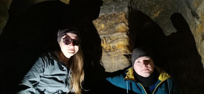 Полезли в пещеры, нашли их не сразу, вход неприметный, у основания холма. Небольшой лаз, а дальше многометровые ходы с высокими потолками, внутри холодно, около 9 градусов. Кельи, комнаты, хранилища. жить наверное можно, даже переночевать скорее всего вполне подойдет. Однако жутковато. Везде камень, темнота, тишина. Лучше в палатке. Сделали круг по тоннелям и вышли на солнце. Сюда стоило ехать.