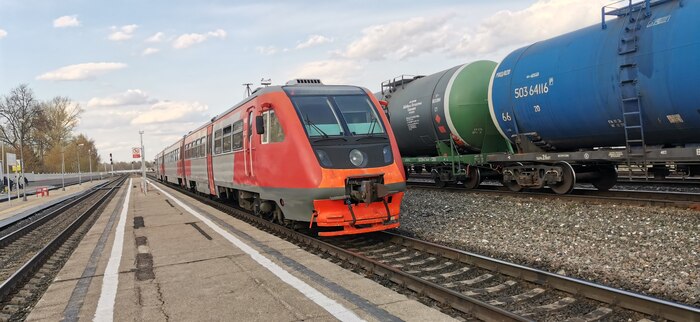 Электричка до Тулы стоит 256 рублей, это включая велосипед. Приехал короткий поезд, я таких не видел. Модель "Рельсовый автобус РА2". Полностью автономный. Короткий, четыре вагона. Мы, как опытные товарищи пошли к первому вагону, однако этот коротышка остановился напротив вокзала, что ж, 20 секунд паники и мы внутри.