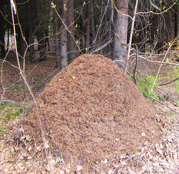 Муравейник рыжих лесных муравьёв, умнейших муравьёв в мире. Источник: Zh. Reznikova, B. Ryabko, 2011. Numerical competence in animals, with an insight from ants. Behaviour, 148, 405—434.