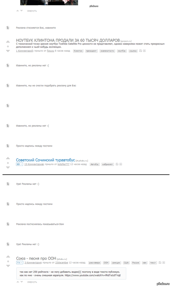 mmx001 Что-то не так с рекламой на сайте. :/ 11 лет назад Сейчас заметил, что на сайте не отображается реклама. Скроллю свежее с самого утра (не обновляя страницу). Может глюк... Никаких блокираторов рекламы нет. Реклама на Пикабу Глюки Тег для красоты