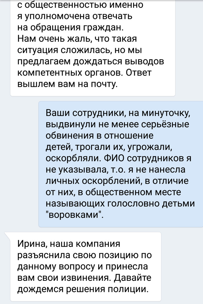 Чувствуете, как звучит? Т.е. тут без суда и следствия была кража и дети априори воровки, а сотрудники просто, пардон, лоханулись, извиняйте.