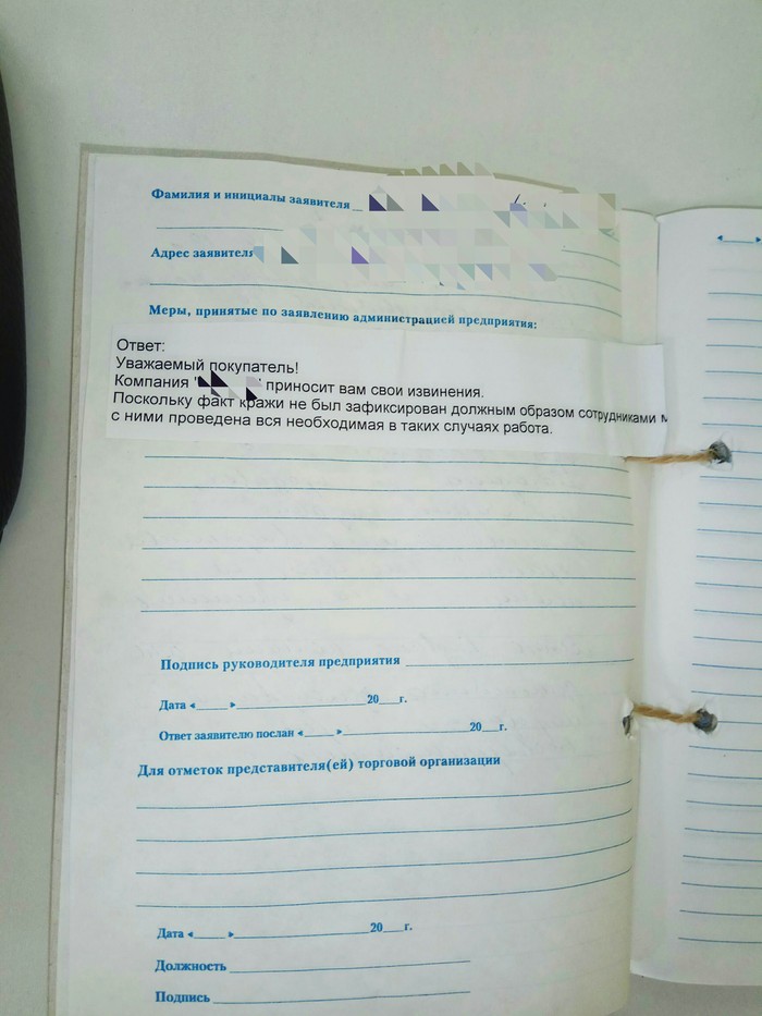 В самом магазине же с названием, созвучному у названию этого поста, на мою запись в Книге жалоб и предложений появилось это: