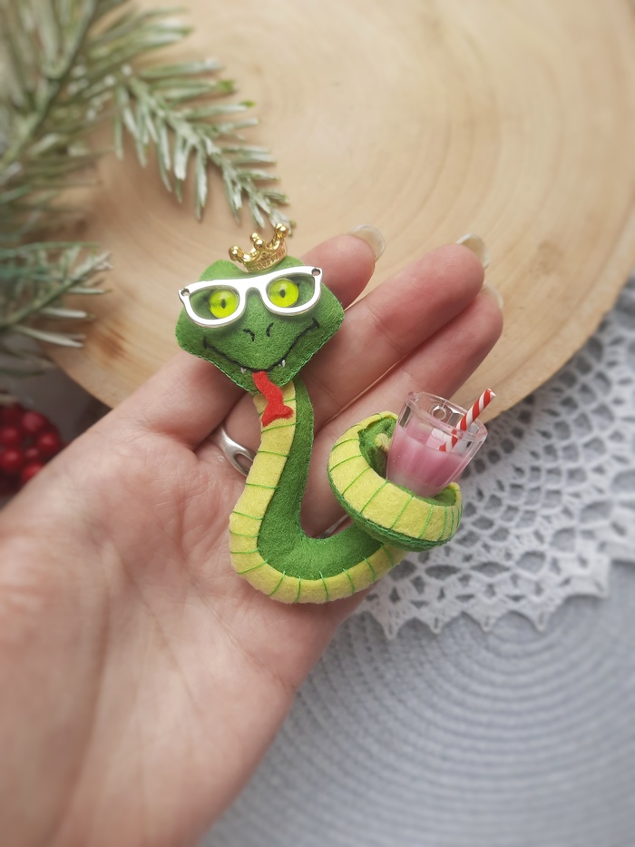Плавненько начинаю шить подарки к новому году 2025. Змеи символизируют возрождение и обновление. 2025 год новой о обновленной жизни! Оставляем плохое и негатив в прошлом. Используемый материал : фетр, холлофайбер, безопасные глазки, пуговицы, нитки, фатин