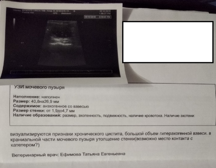 И вот пришел день снятия катетера. Перед снятием коту промывают мочевой еще раз большим количеством раствора, делают узи, смотрят как что там. У кота в мочевом было много взвеси, было видно что кончик катетера упирается коту прямо в стенку мочевого пузыря, то есть он травмировал мочевой все эти 5 дней, пиздец везение. Это не сильно криминально, но объясняет взвесь в мочевом, это частицы крови и эпителия вроде как. Срезают нитки катетера и вынимают его. Мы вздохнули с облегчением. Главное чтобы кот теперь стал писать.