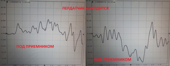 Замечаем, что снизу под шапочку как бы "задувает", ослабление меньше, когда передатчик ниже приемника. Располагаем их на расстоянии 10см по горизонтали и 30см по вертикали, друг под другом: