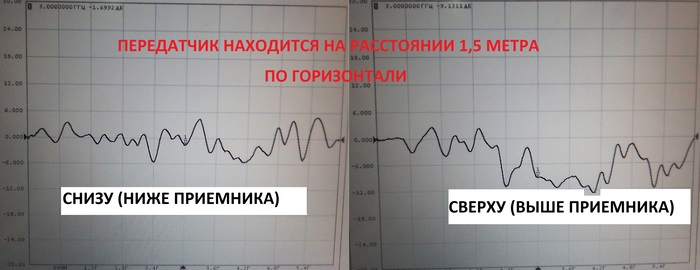 А так же смещаем передатчик относительно приемника по вертикали вверх и вниз: