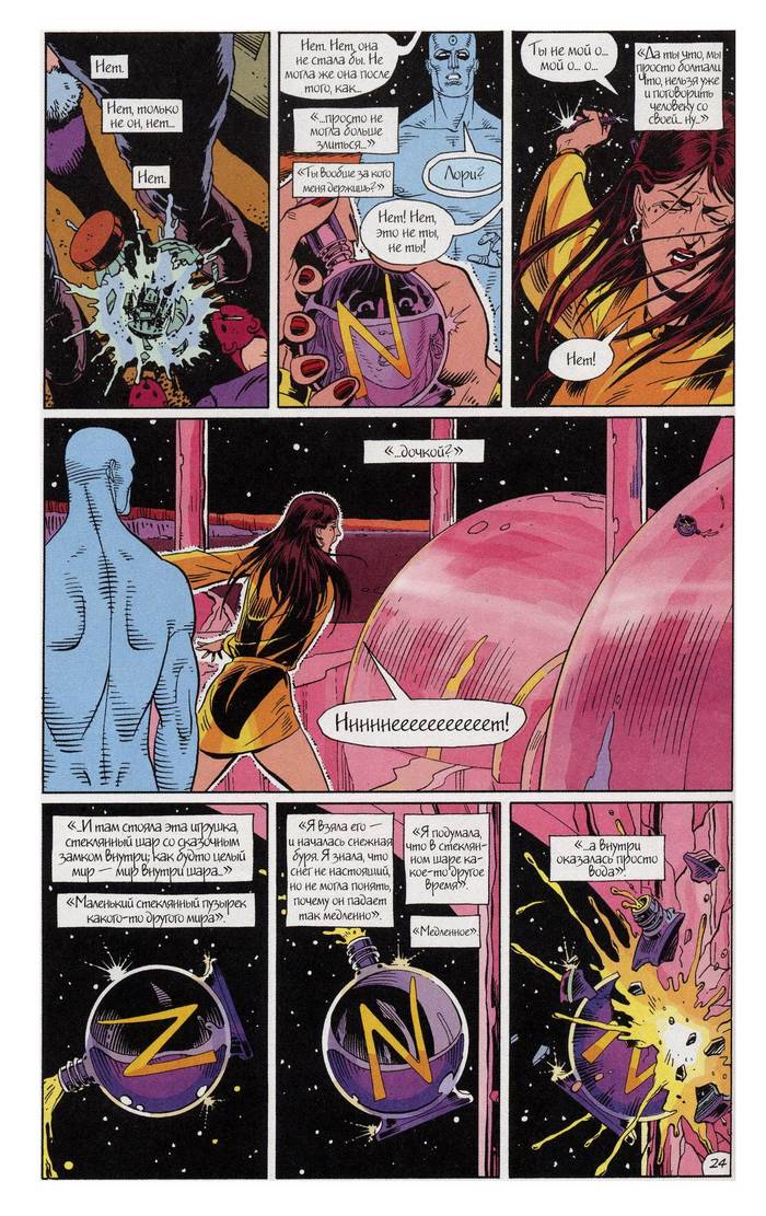 Потрясающая и гениальная серия из двенадцати выпусков о «бывших» супергероях. Это единственный комикс, включенный в сотню лучших литературных произведений XX века по версии журнала TIME. Именно за него Алан Мур получил первую премию Харви. Действие «Хранителей» разворачивается в альтернативной реальности, где существуют супергерои. Президентом США все еще является Никсон и Холодная война все так же актуальна. Восемь лет как супергерои в отставке, теперь они как обычные люди, но Роршах, единственный, кто не снял маску, уверен, что все они оказались в эпицентре смертельного заговора, один из них уже убит. Таким образом герои достают свои старые костюмы и пытаются с накопленными проблемами во время их отсутствия. Это не просто комикс о добре и зле, а глубокое литературное произведение с морально-этическими проблемами, глубиной диалогов и атмосферой неминуемой гибели от приближающейся ядерной войны. Всё это невозможно передать через художественный фильм и эту рецензию. Если не читали – прочтите, вам понравится.