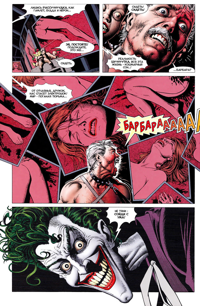 Один из самых мрачных и важных комиксов о Тёмном Рыцаре открывает нашу тройку лидеров. С первых страниц атмосфера нуара предупреждает, что ждать хорошего от этой истории не стоит: ночь, ужасный проливной дождь, длинные тени, угрюмые лица. Наверное, в нем описаны одни из самых ключевых событий в истории Бэтмена. Сюжет строится вокруг попытки Джокера свести с ума комиссара полиции Джеймса Гордона. Таким образом злодей пытается показать как один «неудачный» день может изменить даже самого выдающегося человека. Параллельно мы узнаем, что как у Бэтмена, так и Джокера был тот самый день, который полностью изменил их. Таким образом автор раскрывает идею о том, что Бэтмен так же безумен, как и преступники, с которыми он сражается, но проявляется это безумие другим образом, зеркально Джокеру.
