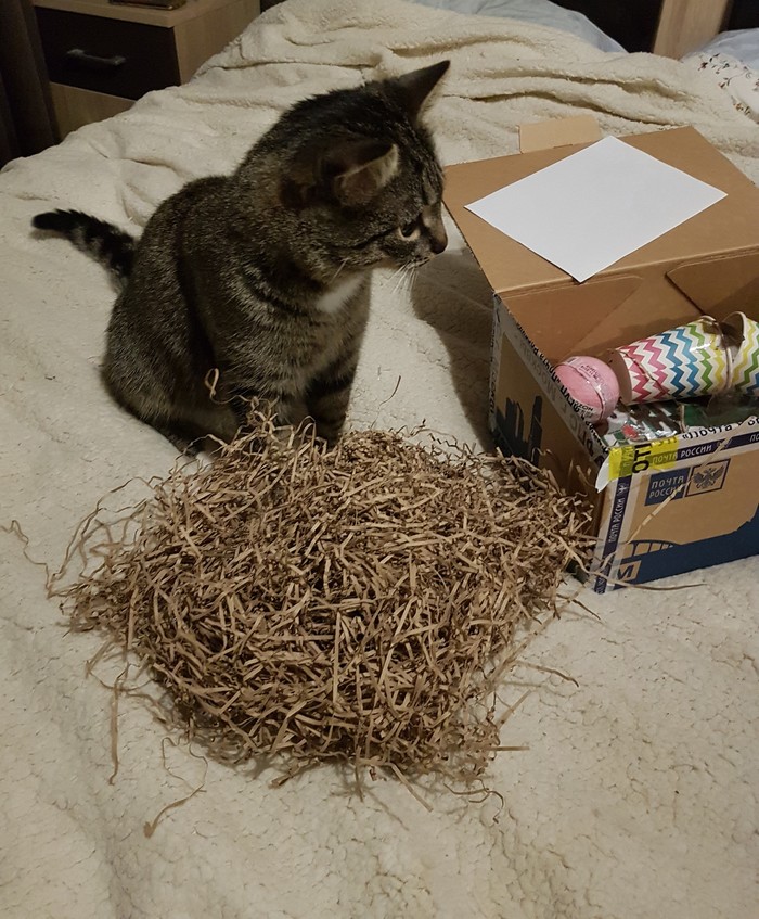 Какен (кот) в этот раз припозднился и инспекцию посылки проводила Рокси (собака).