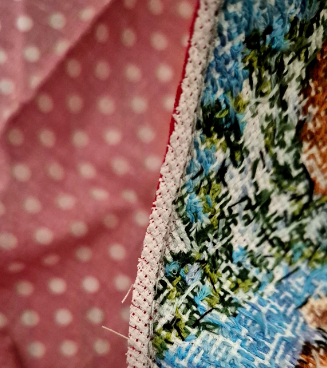 9. Подворачиваем открытый край канвы, пришиваем его к подкладке потайным швом.