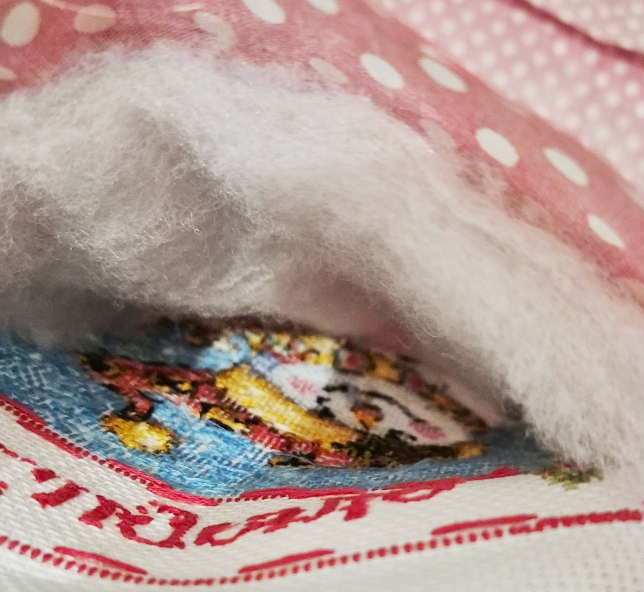 8. Аккуратно вставляем синтепон между подкладкой и канвой, расправляем.