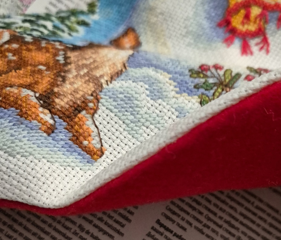 Когда вышивала первый сапожок, долго находилась в ступоре и боялась приступать к сшиванию, так как инструкция, которую насчет этого предлагает Dimensions, крайне странная. По отзывам вышивальщиц, кто-то тоже опасается этого процесса, и в итоге не оформляет вышивку в сапог, кто-то отдает на сшивание другим. Я в итоге пришла к следующему алгоритму, по которому сшила уже третий сапожок.