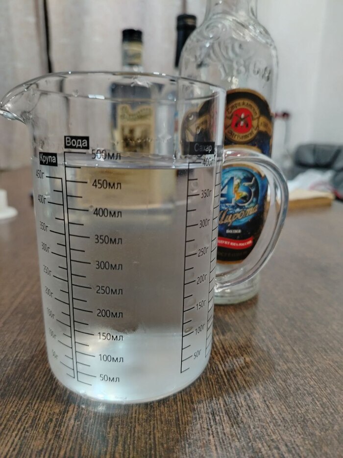 "45 широта". ЛВЗ "Стрижамент". Дата производства - 31.08.13. Прозрачная, без мути. Объем жидкости составил 0,46 л. Крепость - 37°