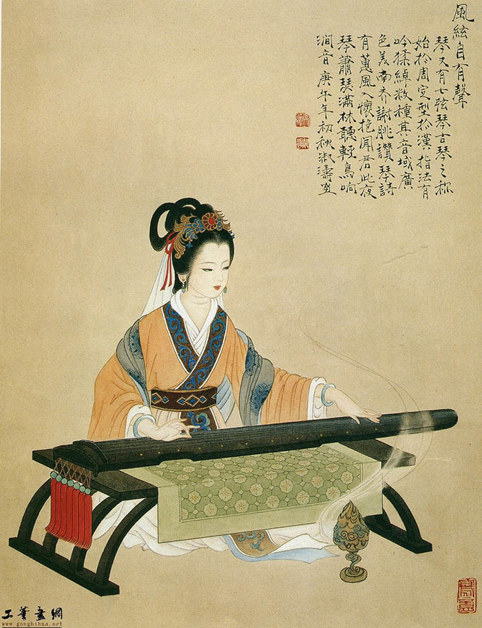 Девушка, играющая на цине. Рисунок, конечно, намного более поздних времен, но нужно же было хоть одну красотку вставить для атмосферности!