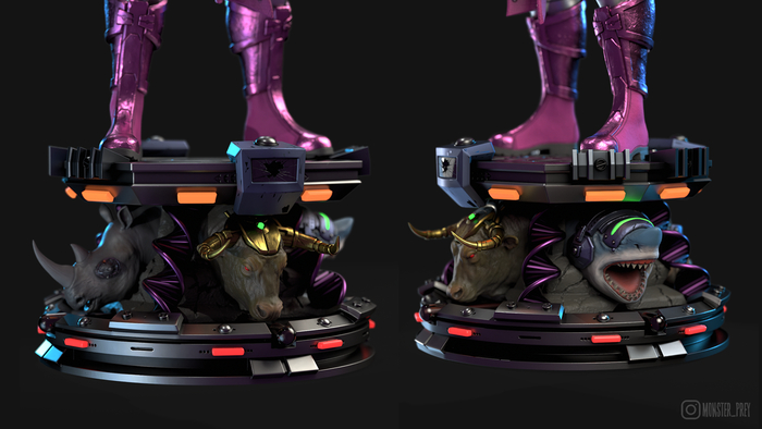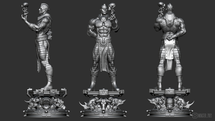 Я давно не создавал женских персонажей, поэтому решил сделать её для практики женской анатомии. Хотел показать её очень сильной женщиной, в формате статуи. Поскольку её создал Альтрон, я прикрепила к подставке классическую голову Альтрона.