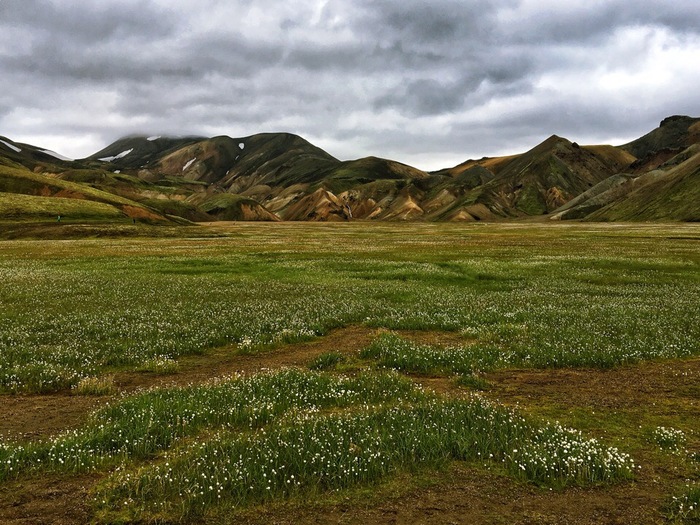 Ландманналаугар - нагорная местность в заповеднике Фьяллабак на юге Исландии. Это потрясающей и неповторимой красоты ландшафт. В 1477 году здесь произошло извержение вулкана, откуда и появились поля и долины, покрытые черной лавой. С годами на лаве вырос мох, оттенив черную лаву всеми оттенками зелени - от пепельно-зеленого до изумрудного. Вся территория испещрена речками, ручейками - это результат таяния близлежащего ледника.