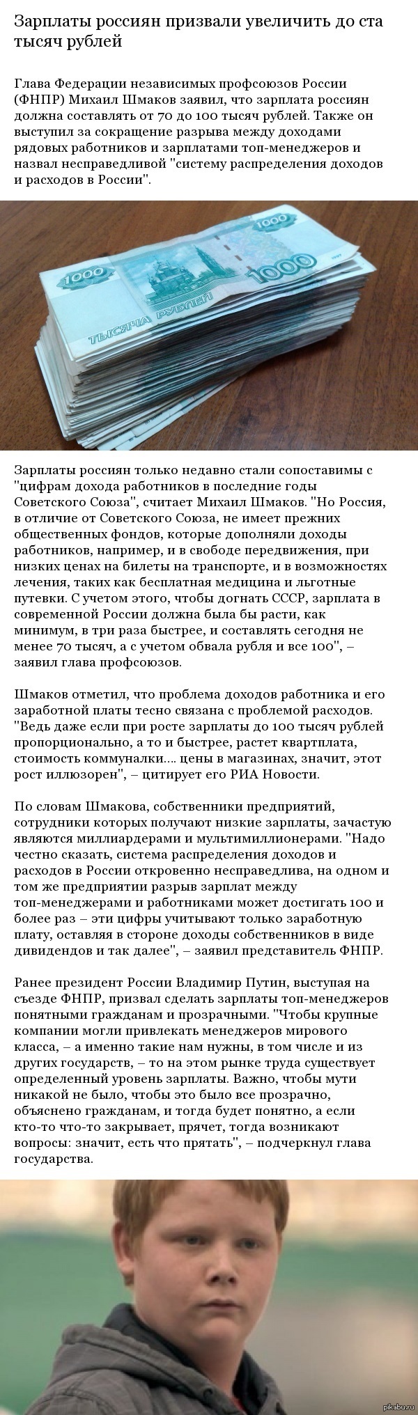 139 morozOver9000 Зарплаты россиян призвали увеличить до ста тысяч 10 лет назад я считаю, это хорошая идея Показать полностью 1 Длиннопост Новости Россия Зарплата Экономика
