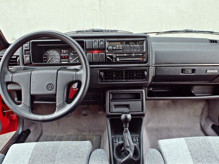 Плавно перейдем к силовому агрегату: большая часть экземпляров оснащалась стандартным 1.80, четырехцилиндровым, 98-ми сильным двигателем, при расходе 9 – 12 литров на сотню. Хотя, эти цифры заявлены заводом изготовителем – можно догнать и до 16 литров смело, но тут все зависит от динамики езды. Был еще 115-ти сильный, позаимствованный с GTI, но это скорее роскошь, ведь цена была значительно выше, да и выпущено было всего 50 или даже меньше экземпляров с подобным двигателем. На всех установленных двигателях, уже тогда устанавливался катализатор.
