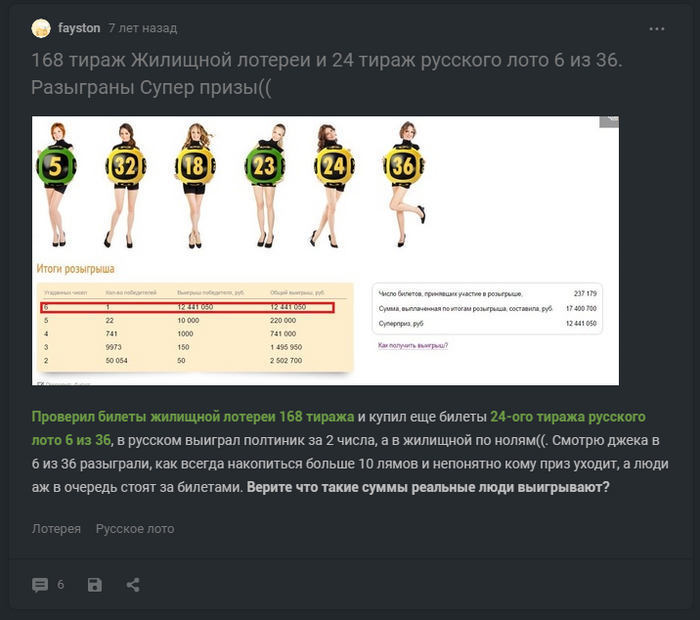 Мне стало ооочень интересно, я просто забил в поиске Яндекса его ник и увидел что есть такой аккаунт на Пикабу, а теперь самое интересное. У него всего два поста за всё время и они о лотереи))