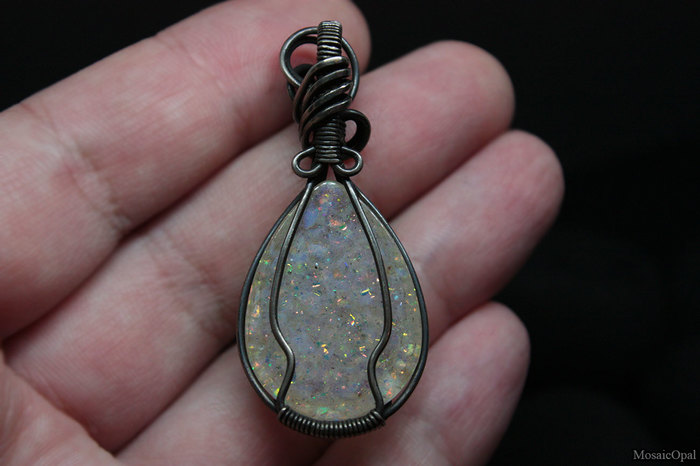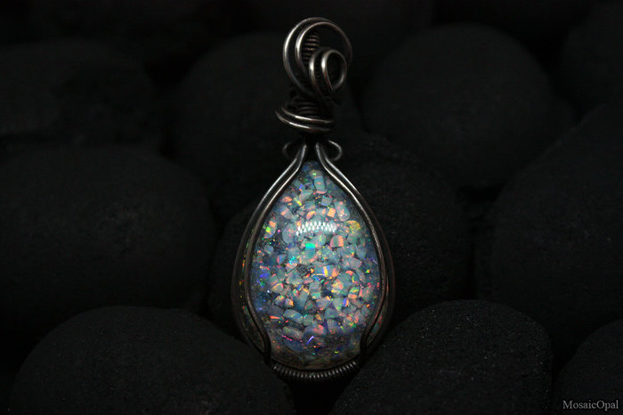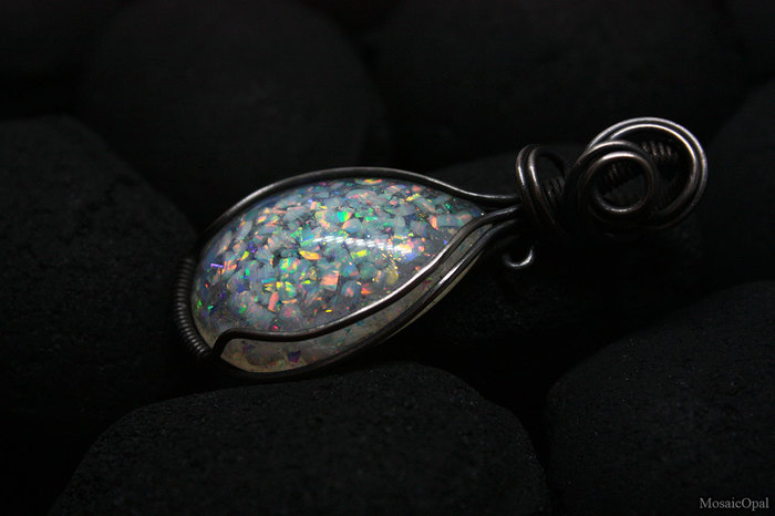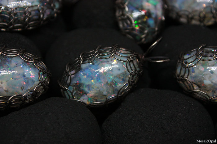 Ну и немного про процесс. Лаву и лунный камень для кулонов - беру бусами и ломаю потом молотком. Из них потом выходит отличная подложка. Опалов уходит меньше, а их игра только лучше раскрывается.