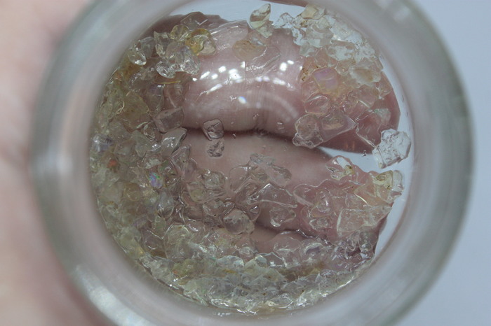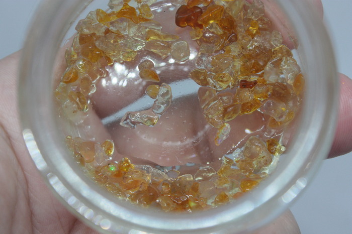 - Заливаем камни. Пакетика выше хватит ровно на 3 эксперимента. Вот тут на фото, например, - я делал Яйца дракона. И оно было намного интереснее, чем заливка из одних черных опалов.