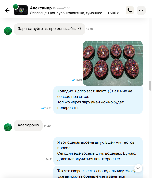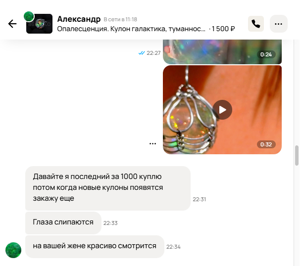 Уже по этой 1000 нужно было что-то заподозрить, но нет. Вы продолжаете общаться, делая в это время кулоны. Как и договаривались.