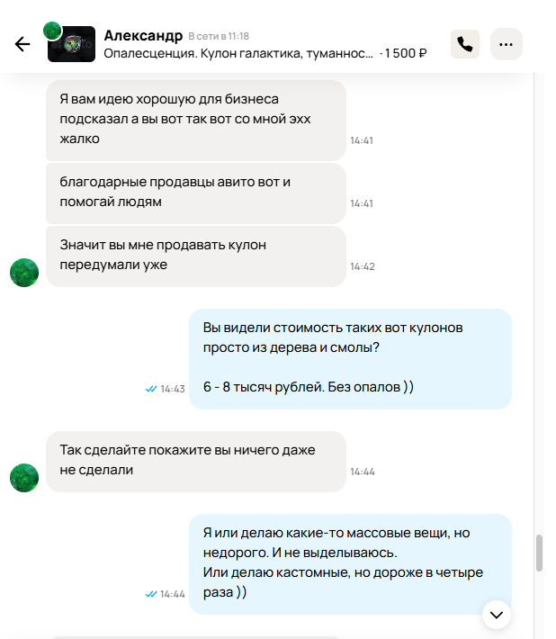 Как видите, Авито считает такое поведение нормальным. Можно написать любому, кто продает. Спросить, продаст ли он за 1000 и... поставить 1 звезду.