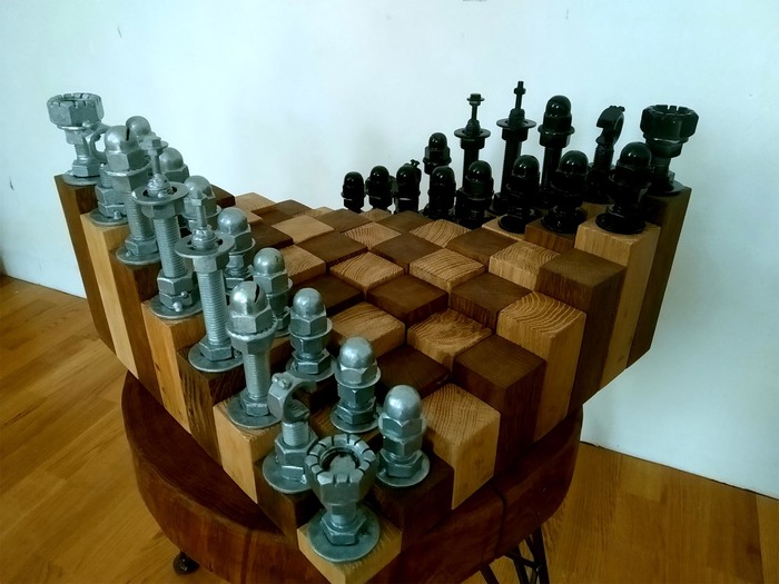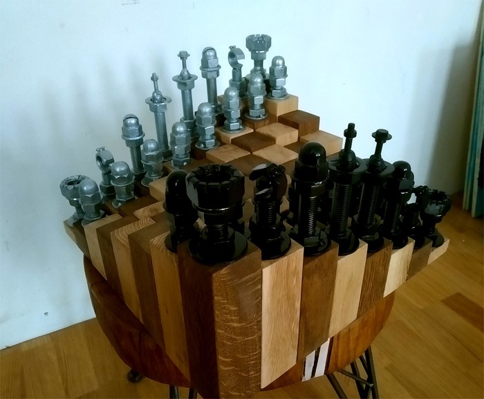 Шахматы из крепежа на просторах сети необъятной видел я.
