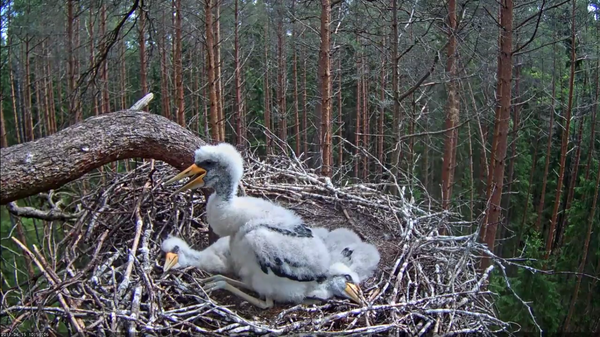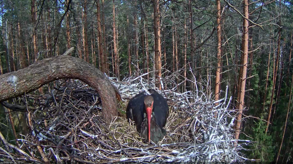 Гнездо черного аиста в диком лесу - онлайн трансляция