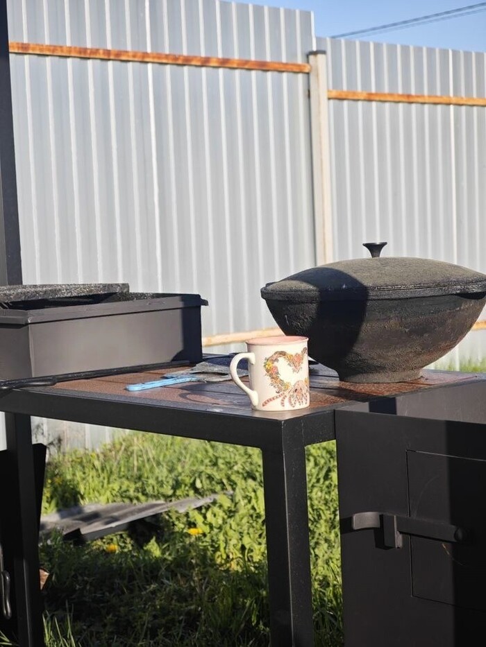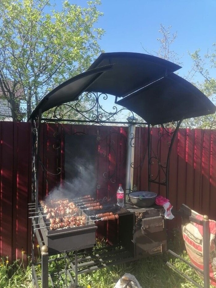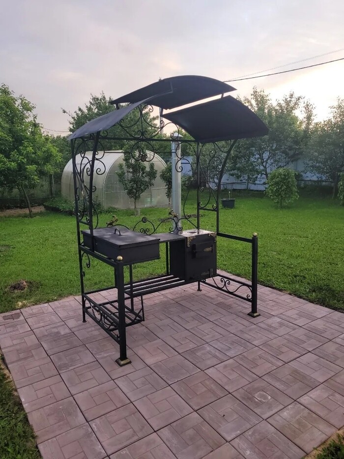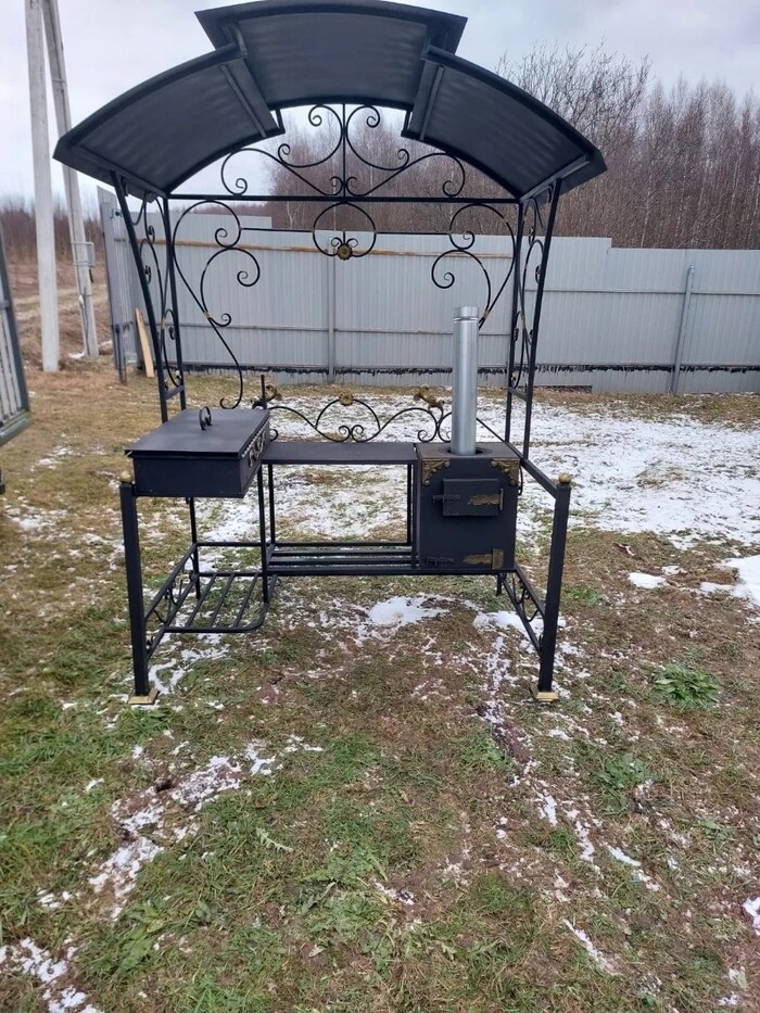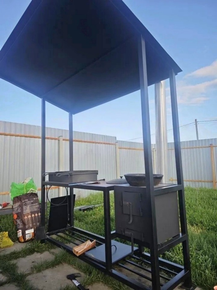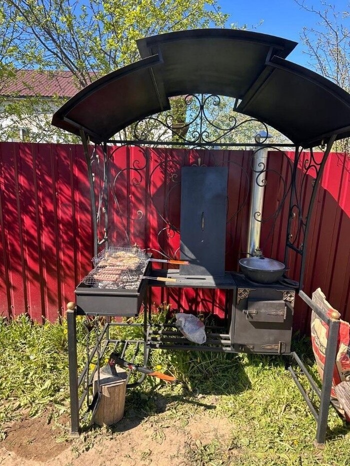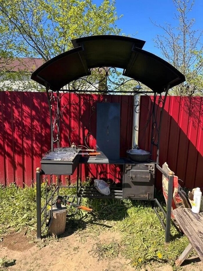 🥯 За доплату: крышка жаровни, труба печки, шампуры, казан, коптильня.