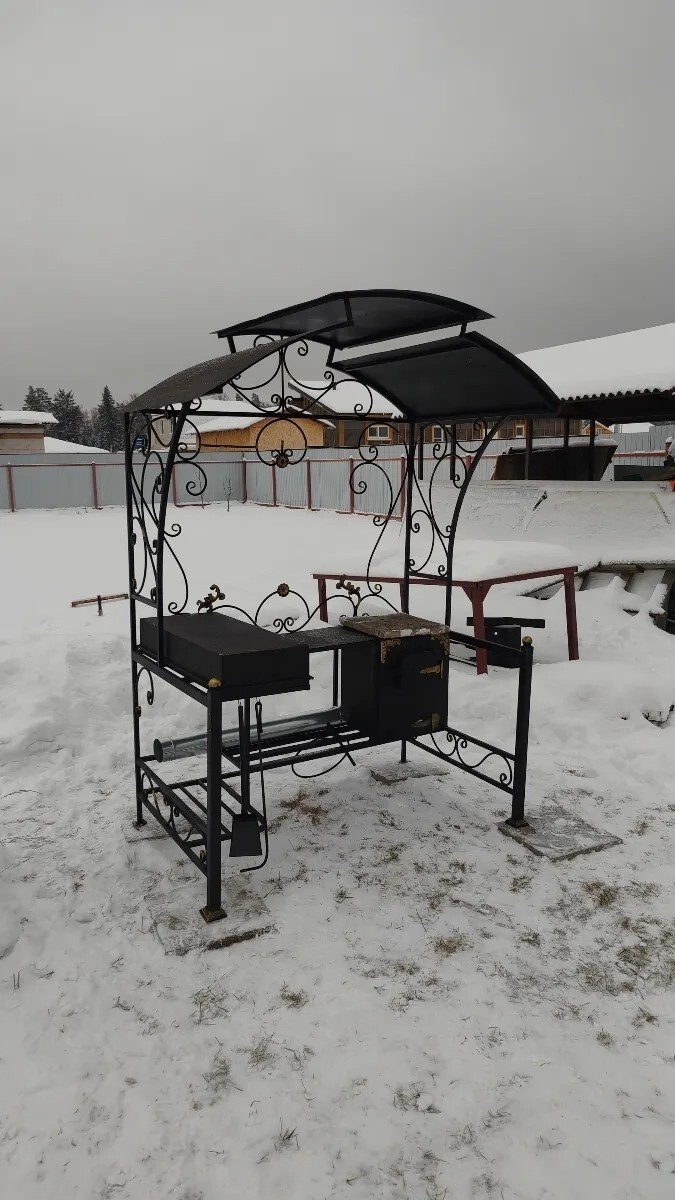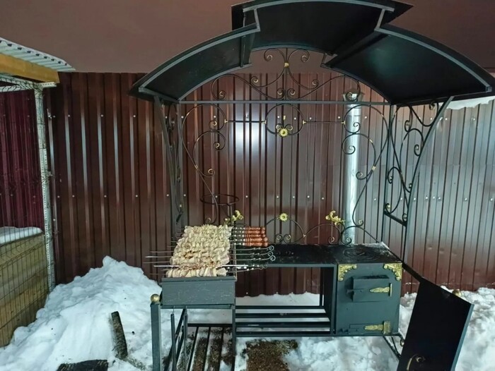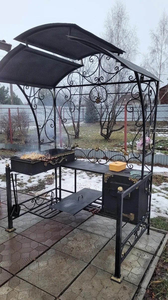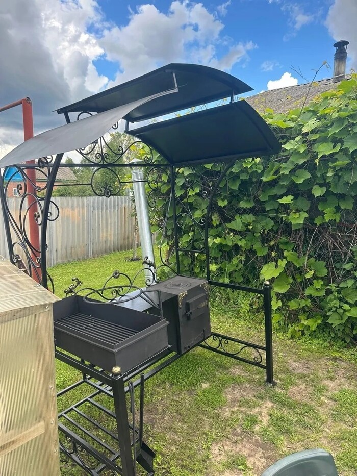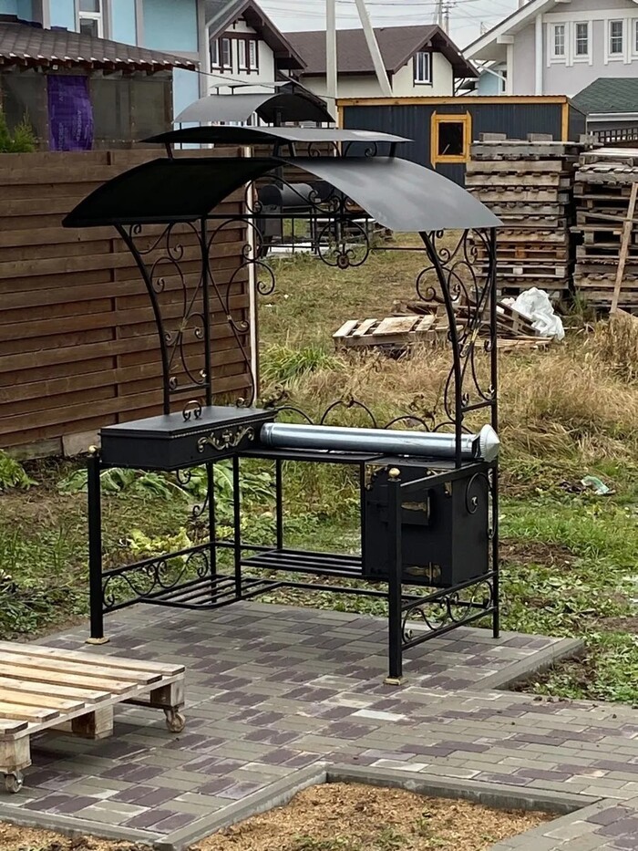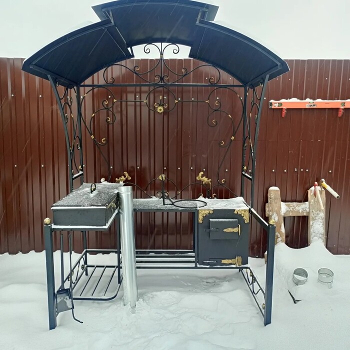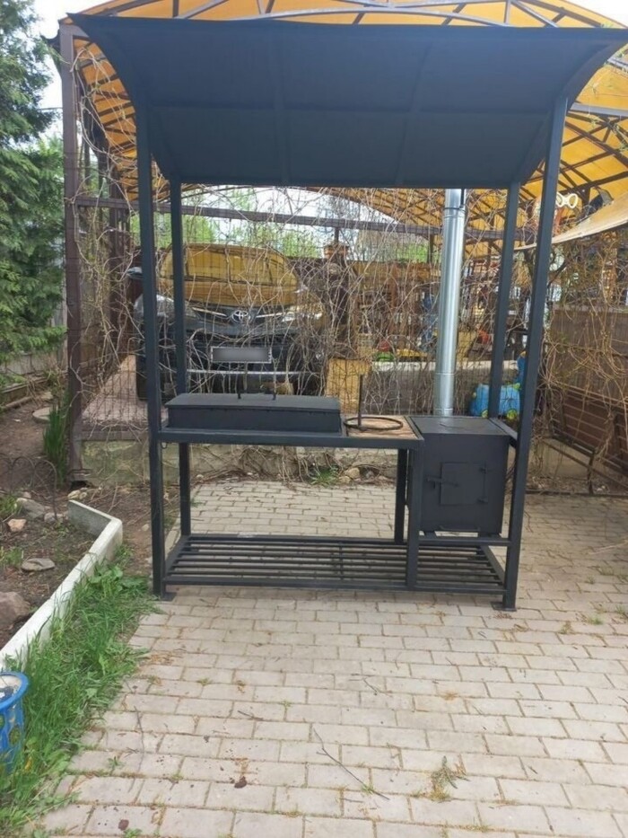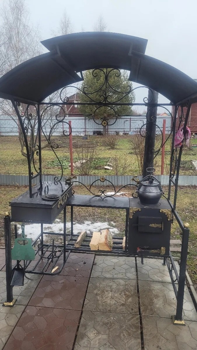 🥯 За доплату: крышка жаровни, труба печки, шампуры, казан, коптильня.