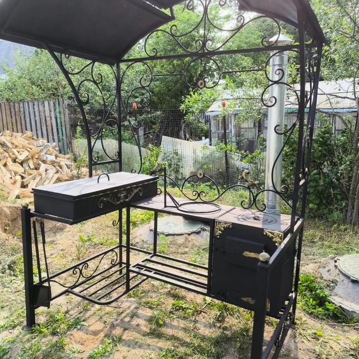 ✅ В комплекте: основание с крышей, съёмная жаровня, съёмная печка,