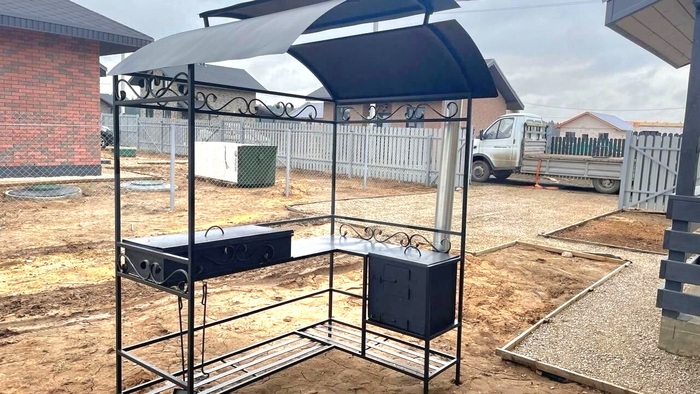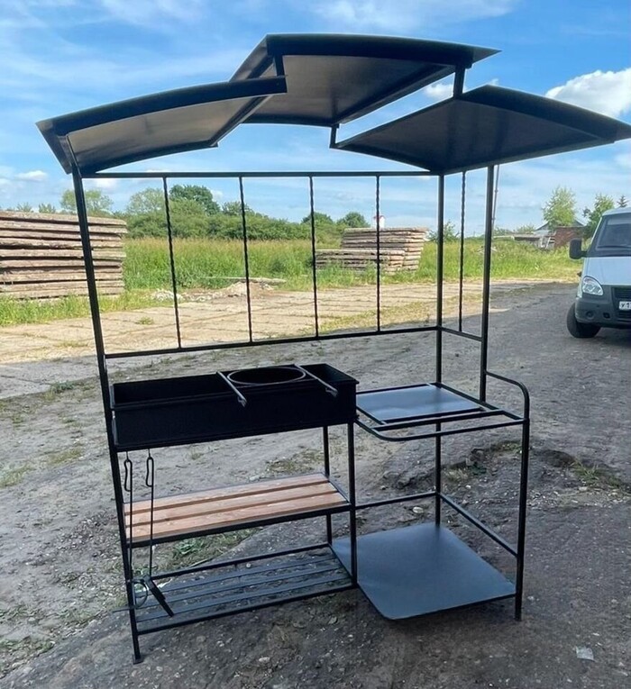 ✅ В комплекте: основание под мангал, съёмная жаровня, боковой стол, стойки крыши 4 шт, крыша,