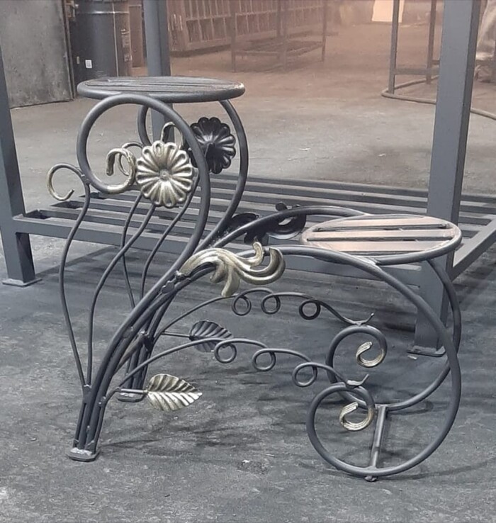 Кованая напольная подставка для цветов КП-2 по т.84957644402 или mos-mangal.ru/?p=30100