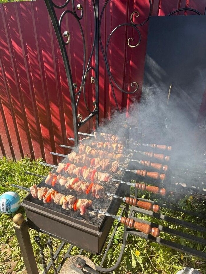 Топка ДхШхВ: 70x35x16 см (на 11 шампуров до 8 кг шашлыков за раз),