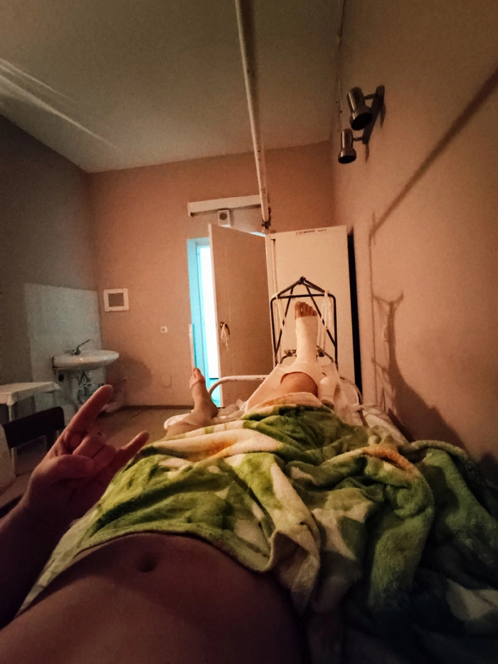 День 8. Спать получилось с 23.00 до 01.00 пока действовал промедол. И по одному часу после двух таблеток кеторола. С 4 часов я бодрствовал. С утра пришла медсестра, взяла кровь и вколола антибиотики. За ней пришёл доктор, спросил самочувствие. Повертел моей ногой со стороны в сторону. Боль терпимая и слышен хруст. На операции мне скрепили большую берцовую кость, а малую не трогали, так как за одну операцию это не делается. Сказал, будем наблюдать и возможно оперировать повторно. Попросил, чтобы привезли костыли, надо двигаться. Разрешил вставать и поворачивать ногу. Ура! Как только он ушёл из палаты, я, похрустывая малоберцовой костью, повернулся как смог на бок и меня отключило. Сказывалось количество недосыпа. Надо сказать, я всех родственников и друзей отговаривал что-либо мне привозить кроме воды и просил навещать пореже. Мне так было проще, а после армии я есть могу всё, поэтому спокойно ел только больничную еду. Через час я подскочил от грохота и слов - хватит уже спать, поехали на рентген. С коляской ворвался хороший человек Ваня. Я пытался ему объяснить спросонья, что доктор вроде не назначал, но Ваня победил. Он сказал , что узнал у медсестёр, что рентген мне нужен, но отвезти меня они не могут, так как очень заняты (при этом она листала ленту инстаграмма). Ваня выпросил коляску и свозил сам меня на рентген. Оказалось, ему тоже когда-то досталось, и он тут был более чем местный. Получили снимок и слегка приуныли, малоберцовая прилично оттошла в сторону. Посмотрим, что скажет доктор в понедельник. Сегодня я дембельнулся со своего судна, кое-как на костылях добрался до туалета. Маленькая победа. На завтра план побег на тихом часу домой, очень хочется помыться. Впереди выходные, думаю ничего кроме перевязок и антибиотиков со мной делать не будут. Жду понедельника.