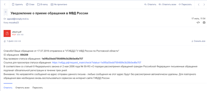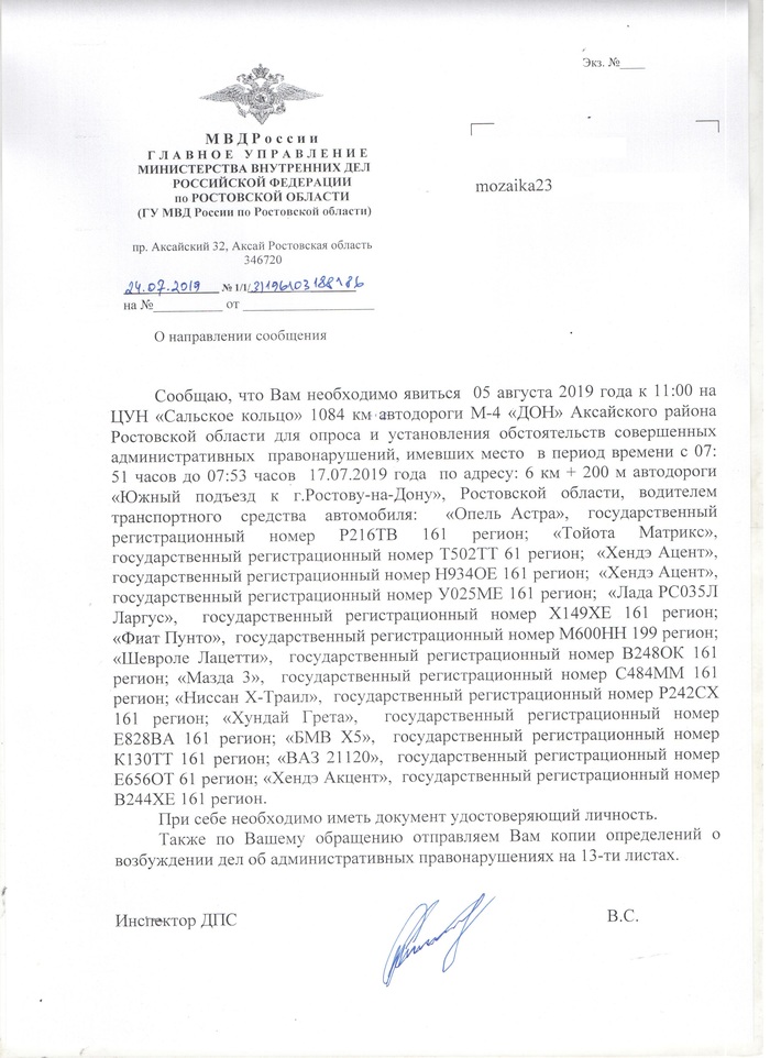9. Дождались. Получаем ответ. В ответе эта и еще множество бумаг по каждому нарушителю отдельно.