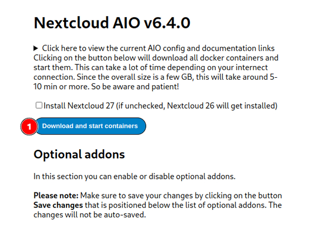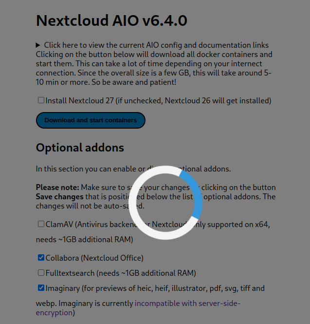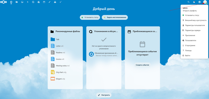 Сервер Nextcloud в редакции All-in-One установлен и готов к работе