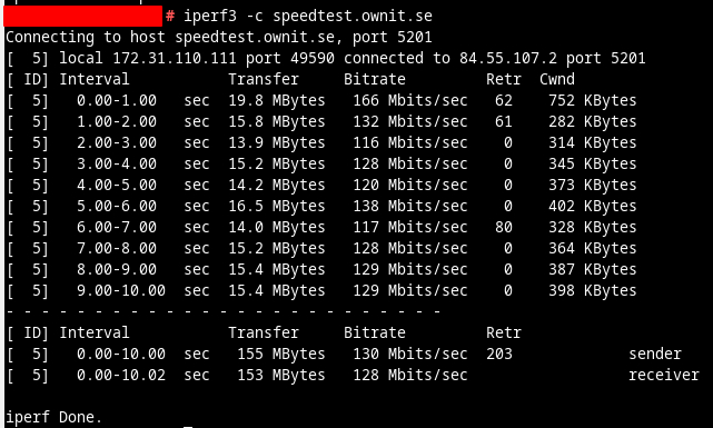 Собственно так мы сможем увидеть сколько можно прокачать из дома до самого сервера и обратно.