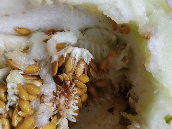 Вот такие инсектиподы завелись в дыне, которую я купил в Мираторге. Это просто ужас. Точнее я ужасно не люблю насекомых, а вот такое, можно проследить ее период созревания. Хотел узнать как такие продукты допускают? Или ничего? Выключатель свет и есть. А ещё арбузы у них зелёные!