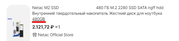 Плюсом сразу добавим SSD - 480 мне показалось оптимальным.