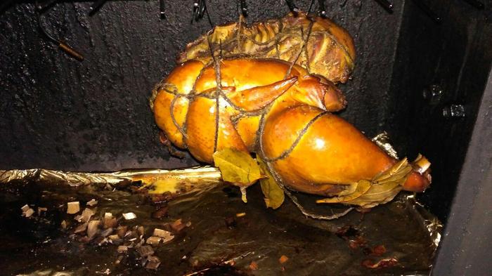 Следующий шаг - это само копчение. Загружаем тушки в коптилку, и начинаем)))