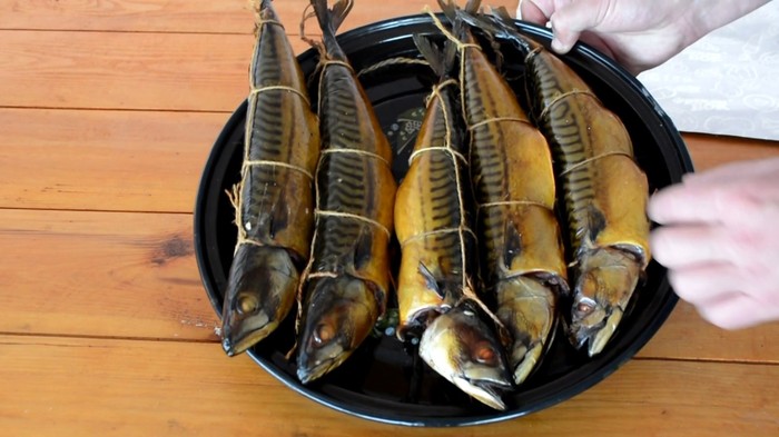 Вторая "хитрость" в том, что соль при приготовлении рассола, засыпаю после того как специи покипят в течение 5 минут, как я описывал ранее. Затем снимаю кастрюлю с плиты и всыпаю соль. Для чего это делается. Если засыпать соль вначале, то при кипении, вместе с каплями кипящей воды во все стороны будут лететь кристаллы соли, растворенные в этой самой воде. Проверено. И плита, и все что вокруг после высыхания покрываются белым налетом. Поэтому соль добавляю в конце. На этом все. Прикреплю ниже фото того, как я обвязываю рыбку. Фото не мое, но в целом делаю также. И при копчении подвешиваю рыбу за хвост. Все соки, жиры, белкИ при копчении стекают вниз.