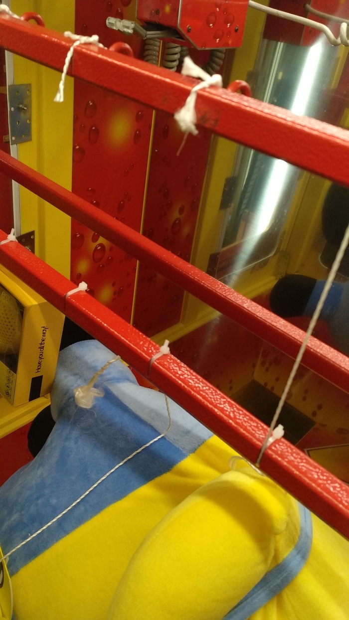 Выбрал деньги около игрушки, потому что там нитка был под небольшим углом и потенциальная площадь контакта с ножницами для их попадания была выше (имхо). Собственно волшебные нажатия на кнопочки и нитка успешно перерезана...
